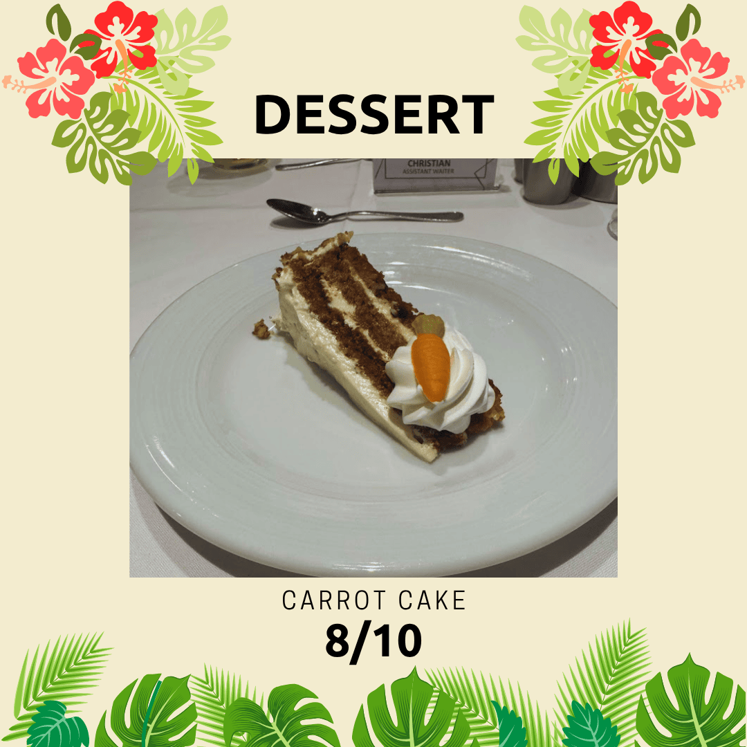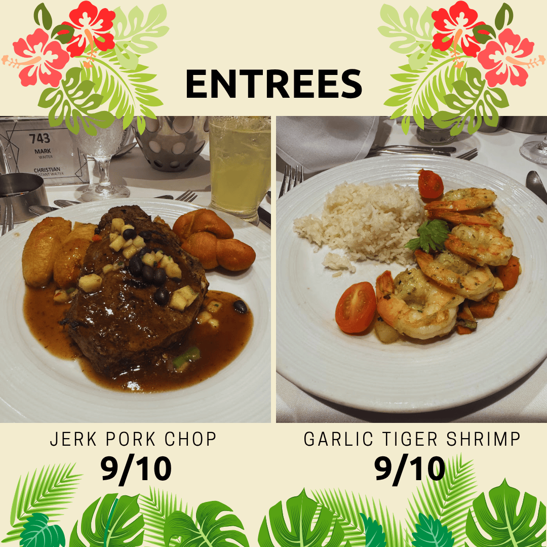 After a relaxing afternoon, it was time to freshen up and get ready for dinner. Tonight’s theme in the Main Dining Room was Caribbean Night, and the menu did not disappoint.
